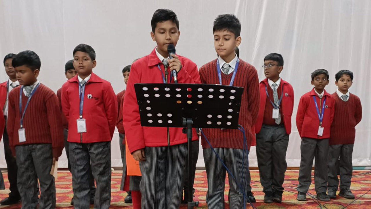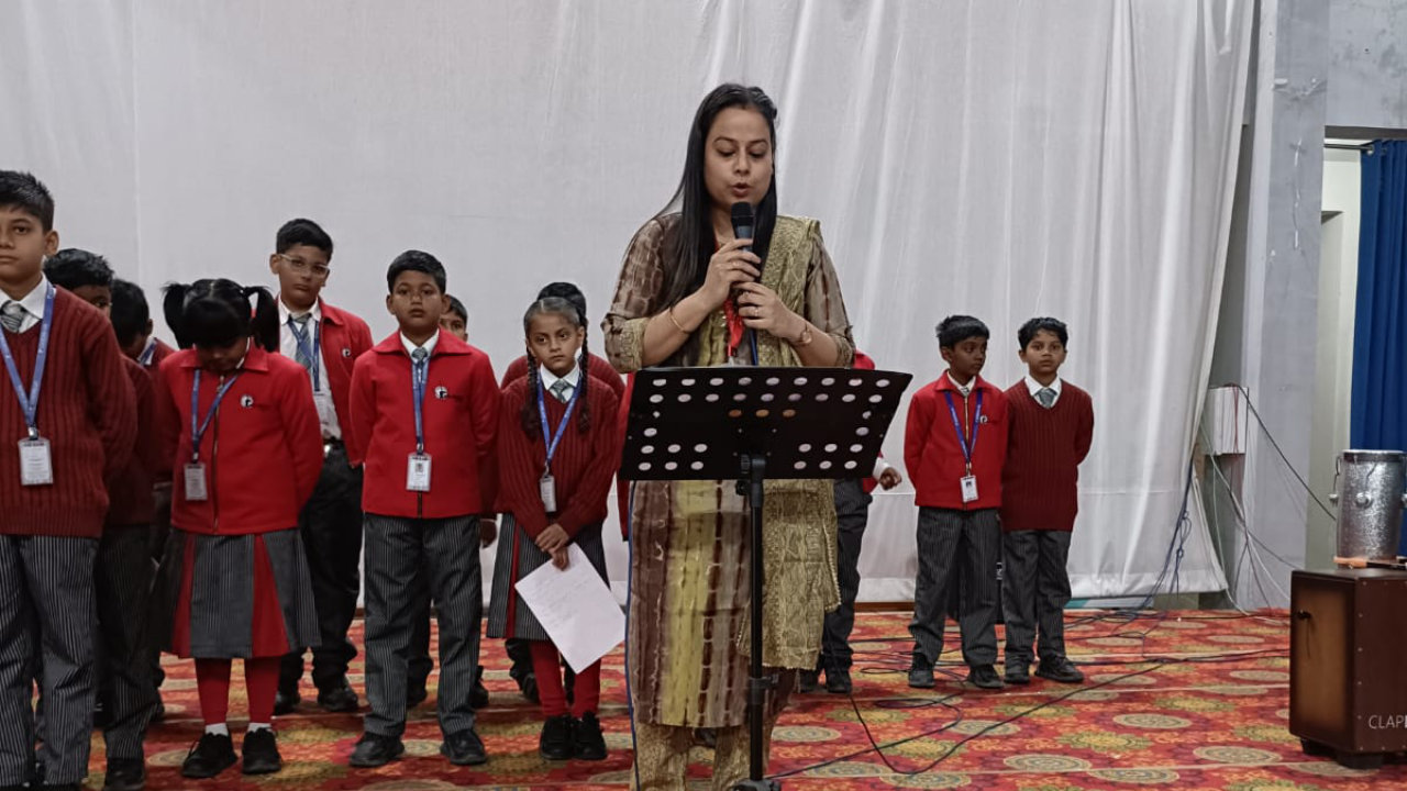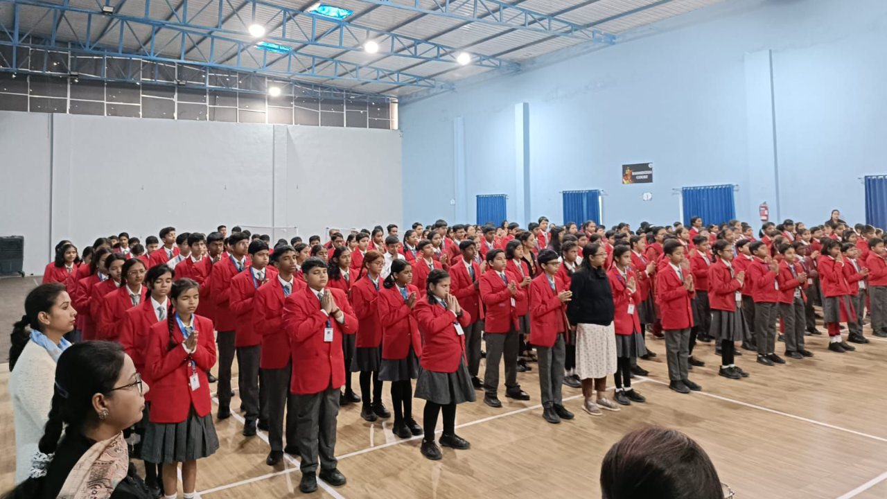 The assembly concluded with a motivational speech by the Class Teacher, Mrs. Akansha Mishra, reinforcing the idea that detachment does not mean indifference but rather developing a strong sense of discipline and focus. The students were encouraged to apply this principle in their daily lives, especially in academics, sports, and personal growth.